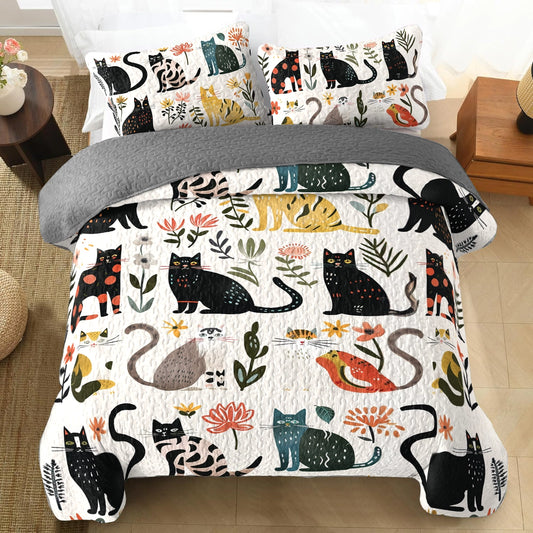 Shineful All Season Quilt 3-Piece Set Botanical Cat Bliss