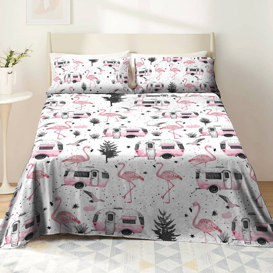 Shineful 4-Piece Bed Sheet Set Flamingo Trip