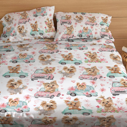 Shineful 4-Piece Bed Sheet Set Yorkie Love