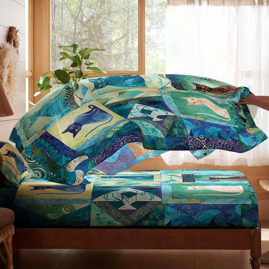 Shineful 4-Piece Bed Sheet Set Mystic Cat