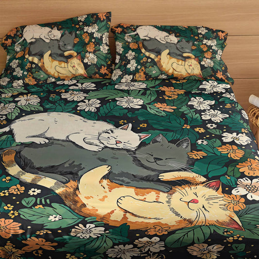 Shineful 4-Piece Bed Sheet Set Sleeping Cats