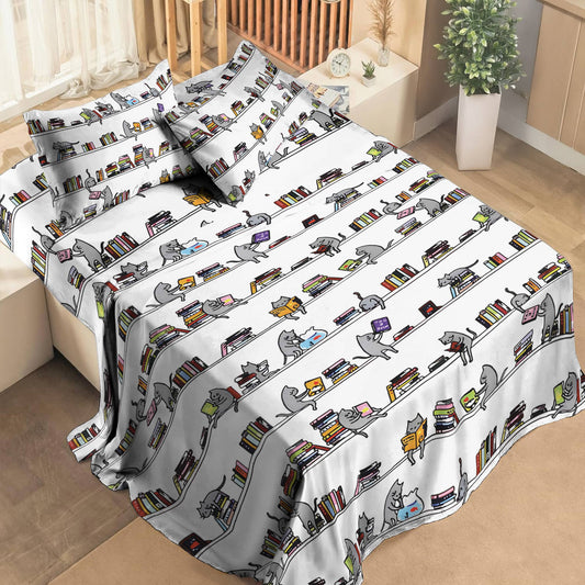 Shineful 4-Piece Bed Sheet Set Cat Reading