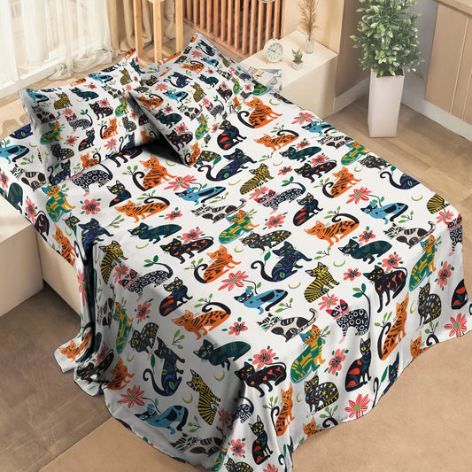 Shineful 4-Piece Bed Sheet Set Floral Felines