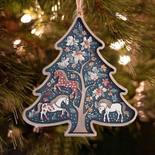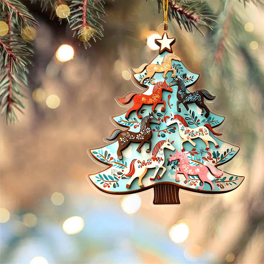 Shineful 2D Acrylic Ornament Meadow Christmas Tree Horses