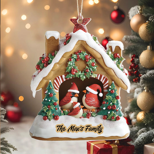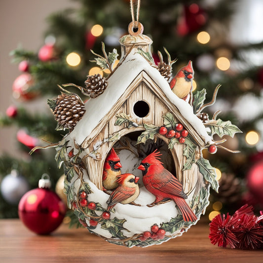 Shineful 2D Acrylic Ornament - Personalized Cardinal Christmas Cottage