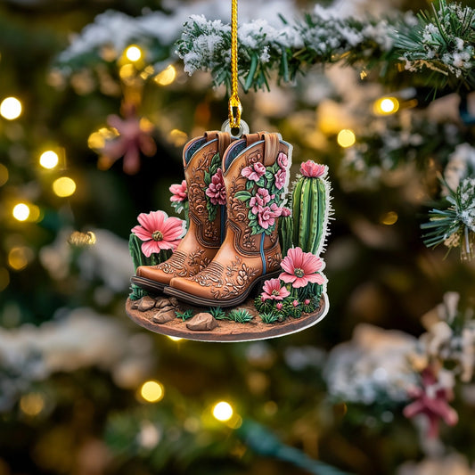 Shineful Acrylic Ornament Blooming Western Charm Cowboy Boot