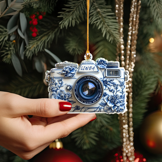 Shineful Personalized 2D Acrylic Ornament Elegant Blue Floral Camera