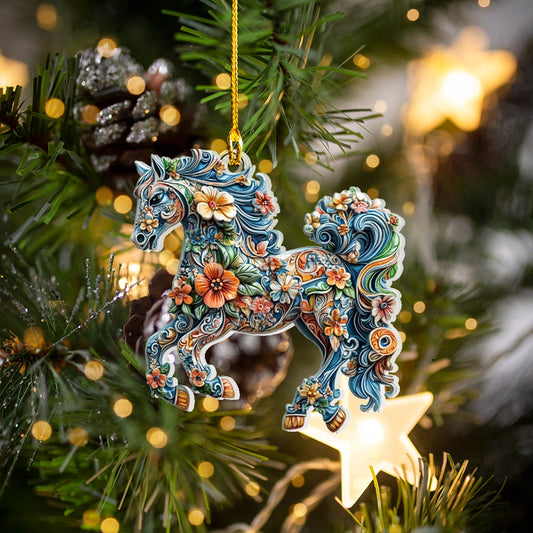 Shineful 2D Acrylic Ornament Wooden Horse Christmas Tree