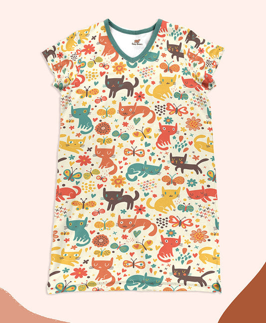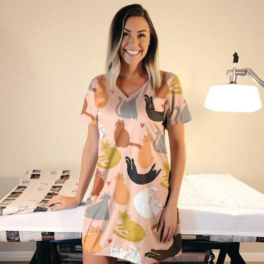 Cats V-neck Women's Nightshirts Beautiful Cat