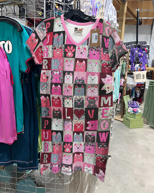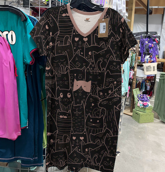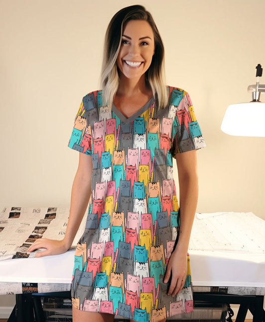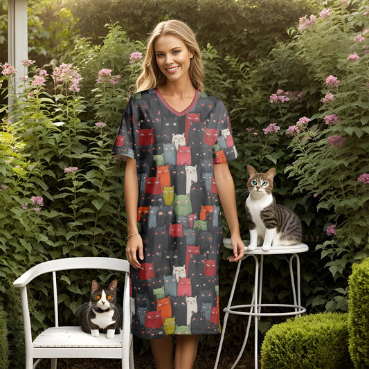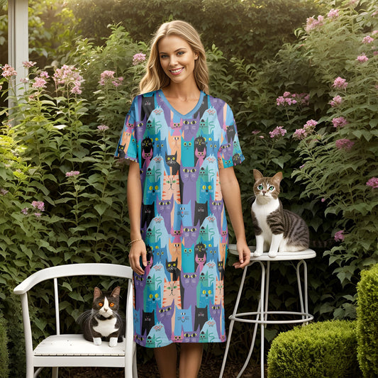 Cats V-neck Nightshirts Mysterious Looking Cats