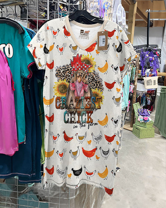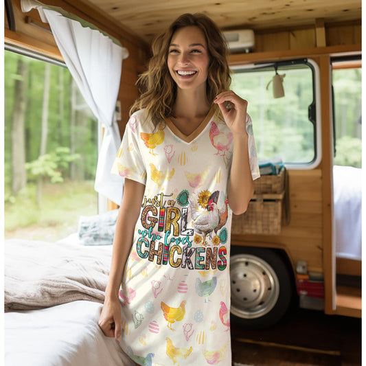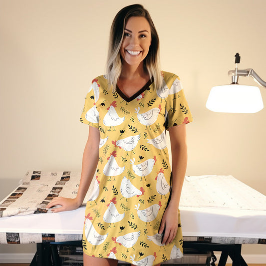 Chicken Shineful V-neck Women's Nightshirts Chicken colorful Efficient