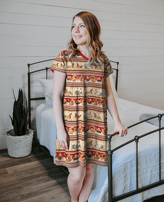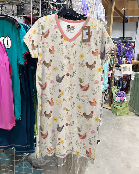 Chickens V-neck Nightshirts Chicken Farm Pattern