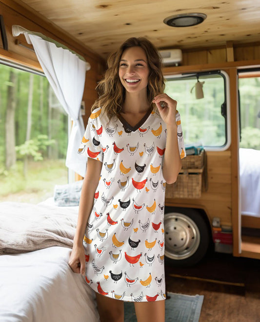 Chickens V-neck Nightshirts Charming