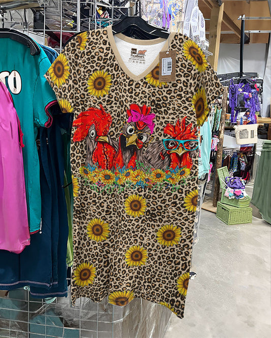 Chickens V-neck Nightshirts Chicken Sunflowers