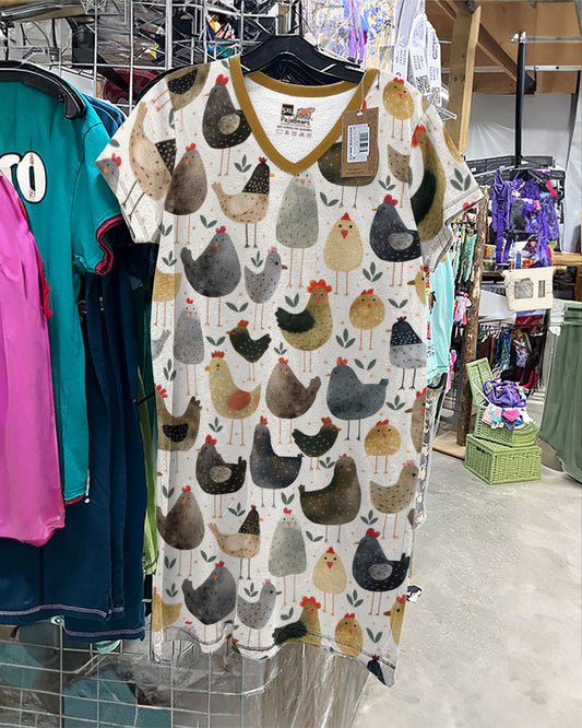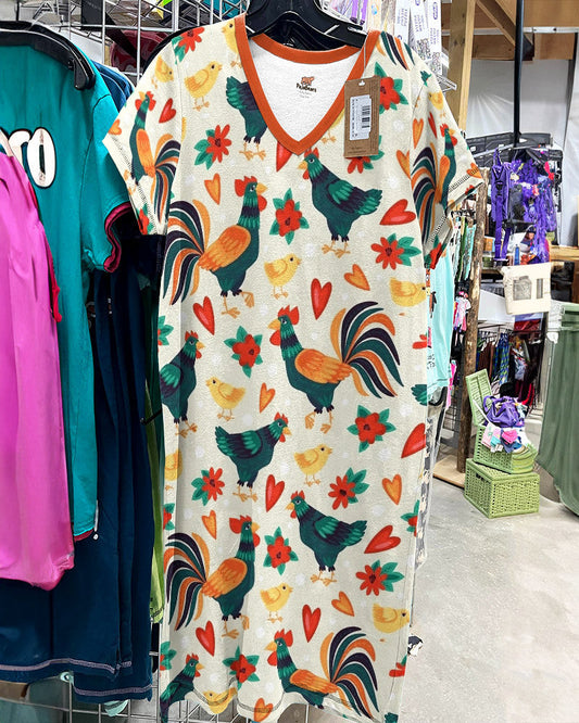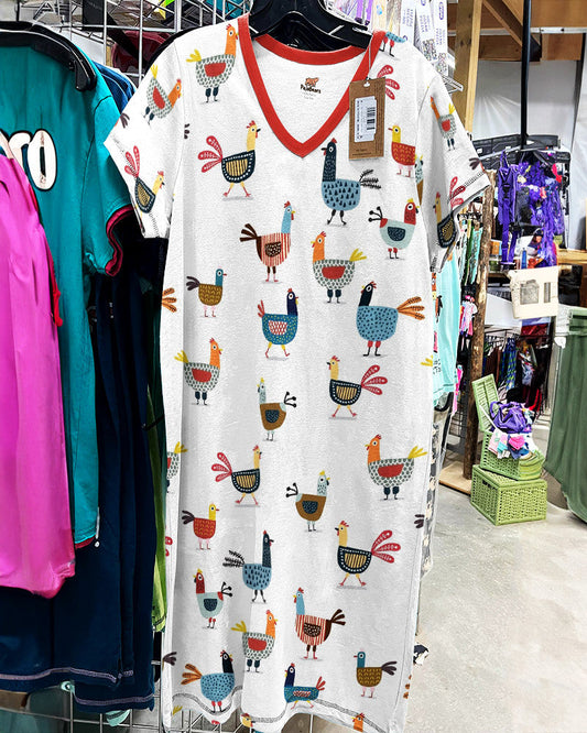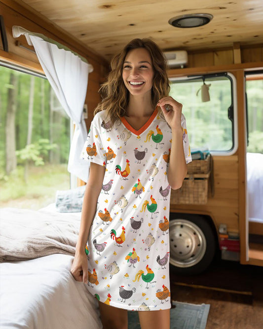 Chickens V-neck Nightshirts Colorful