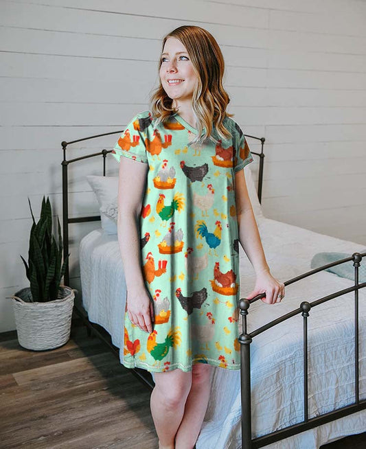Chickens V-neck Women's Nightshirts Chicken Lover