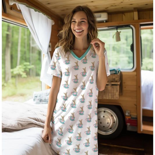 Chihuahuas V-neck Nightshirts Puppy In A Tea Cup