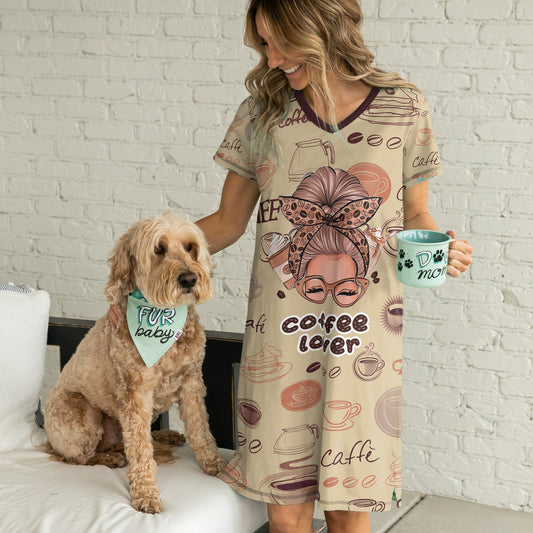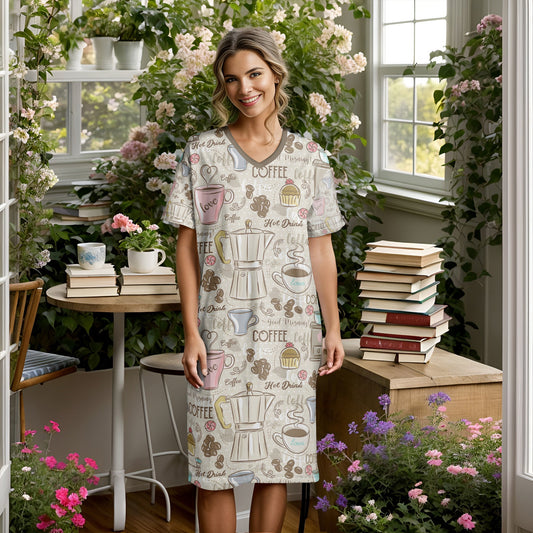 Coffee Shineful V-neck Nightshirts Coffee Lover
