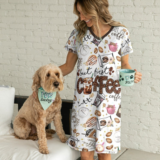 Coffee Shineful V-neck Nightshirt But first, coffee
