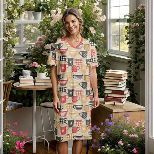 Coffee Shineful V-neck Cozy Cups Nightshirts