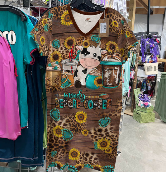 Coffee Cow Shineful V-neck Nightshirts Moody Before Coffee