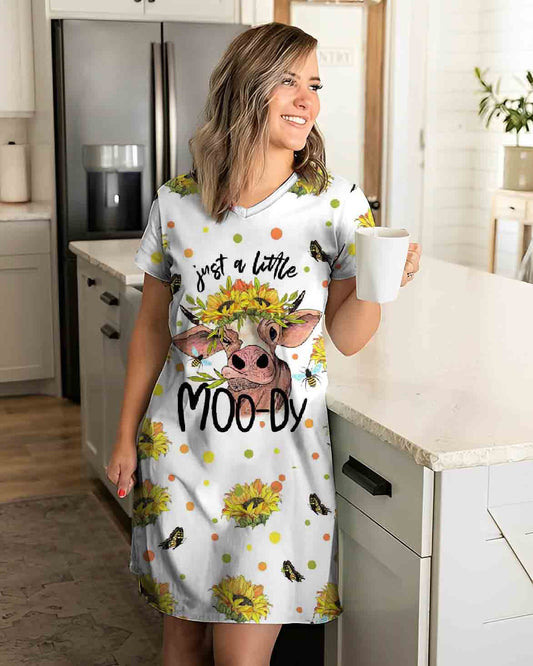 Cow Shineful V-neck Women's Nightshirts Just A Little Moody