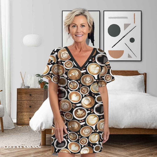 Coffees V-neck Women's Nightshirts Coffee Shop