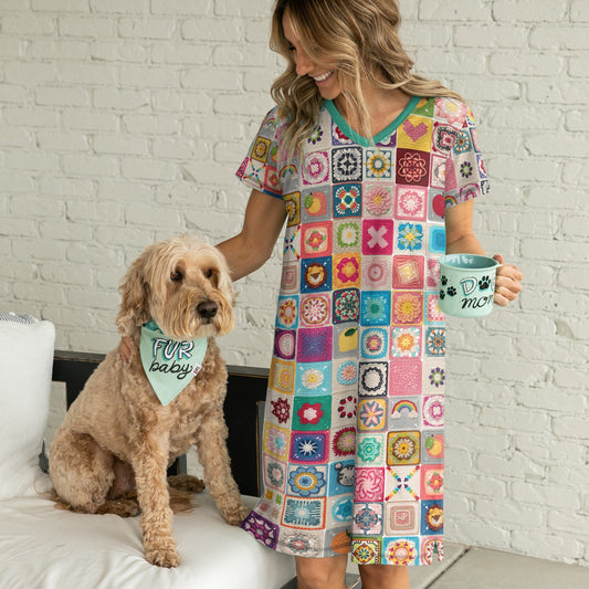 Crochet Shineful V-neck Nightshirts Granny Square