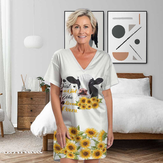 Cows V-neck Women's Nightshirts Just A Girl Who Loves Cows