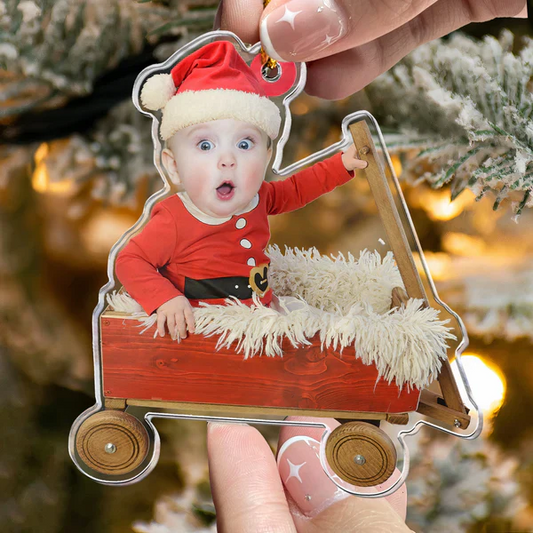 Custom Baby Face - Red Wagon - Personalized Acrylic Photo Ornament
