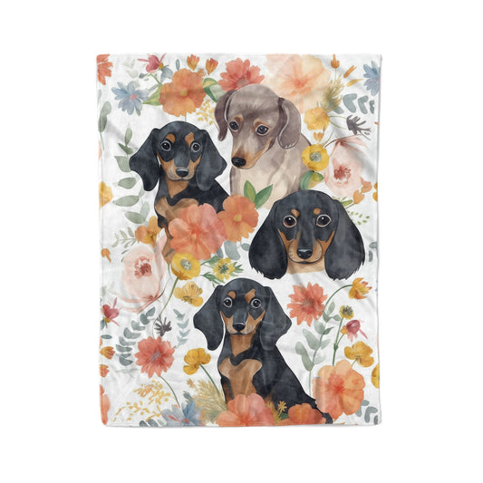 Dachshund Shineful Fleece Blanket Floral