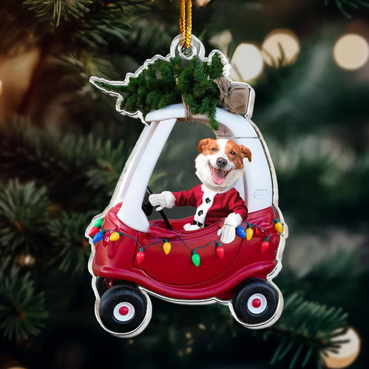 Custom Baby Kid In Car - Personalized Newborn Christmas Photo Ornament
