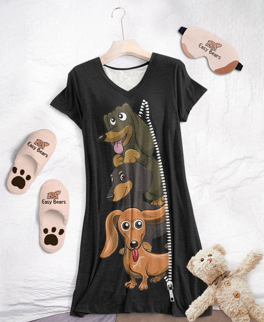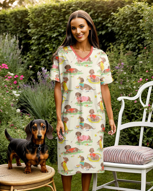 Dachshund Shineful V-neck Nightshirts Dachshund Funny Cute