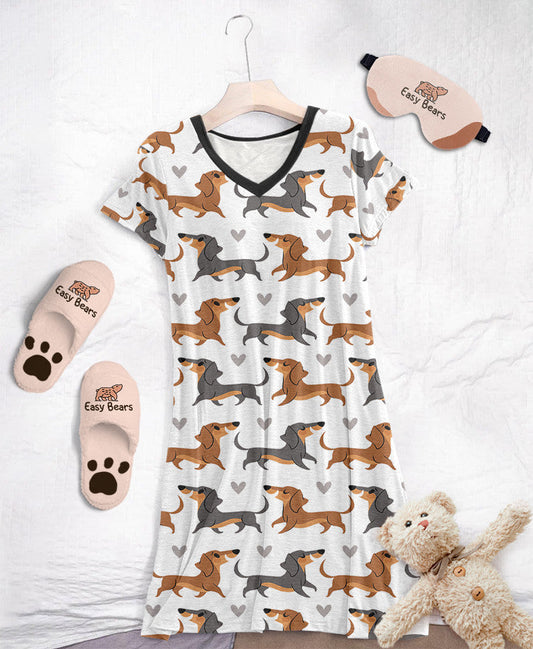 Dachshund Shineful V-neck Nightshirts Dachshund Stylist