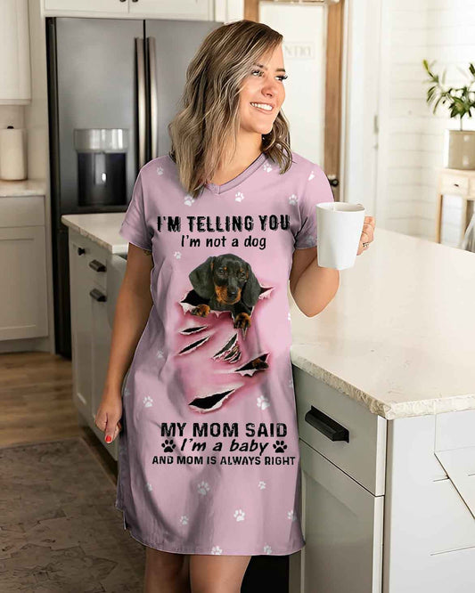 Dachshund Shineful V-neck Women's Nightshirts I'm A Baby Dachshund