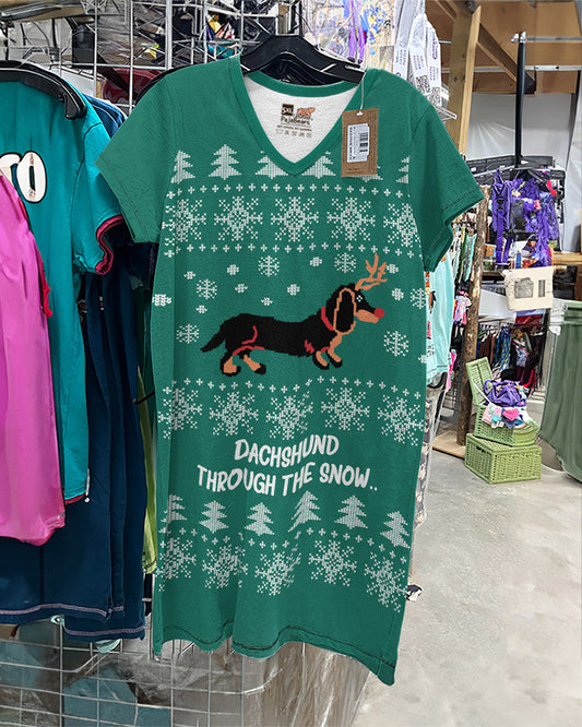 Dachshund through the snow V-neck Shineful V-neck Nightshirt