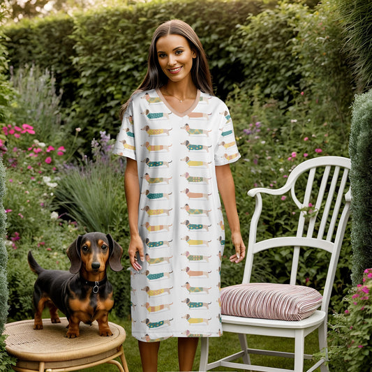 dachshund ugly pattern V-neck Shineful V-neck Nightshirt