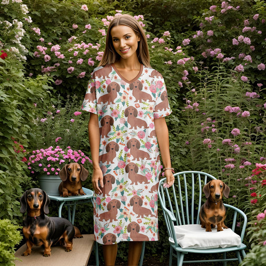 Dachshund Shineful V-neck Nightshirts Snuggly