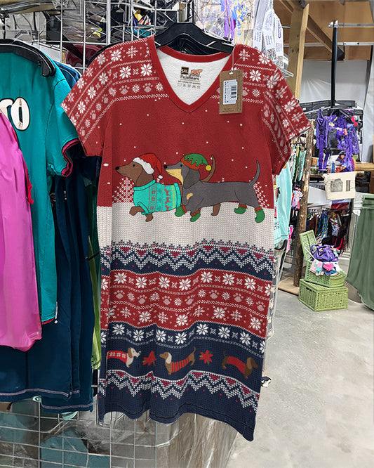 Dachshund Shineful V-neck Nightshirts Merry Christmas