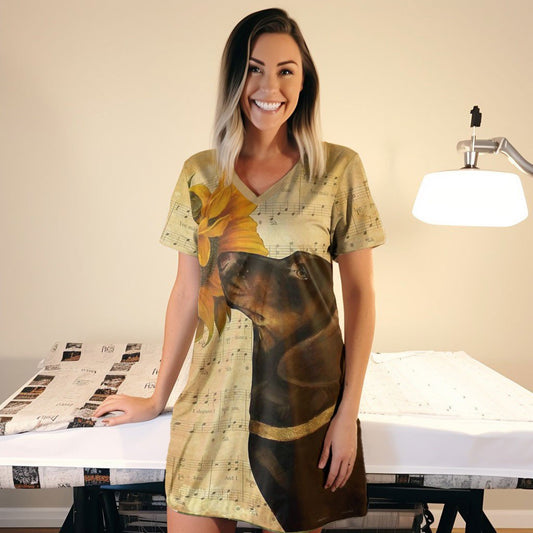 Dachshunds V-neck Nightshirts Dog and Sunflower