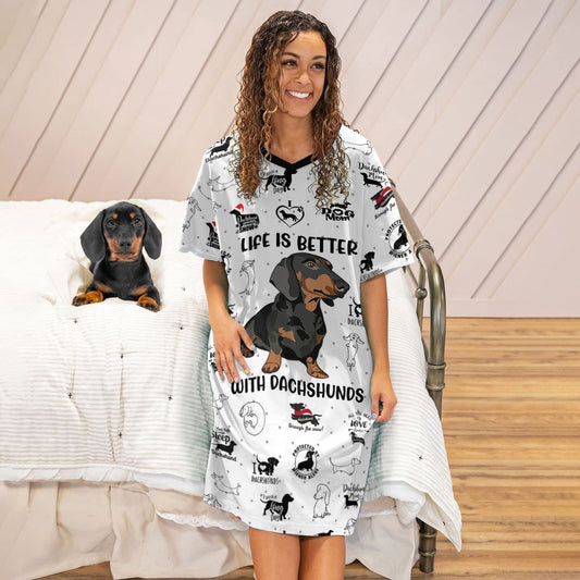 Dachshunds V-neck Nightshirts Life Is Better With Dachshunds