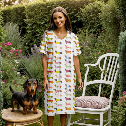 Dachshunds V-neck Nightshirts Lovely dog