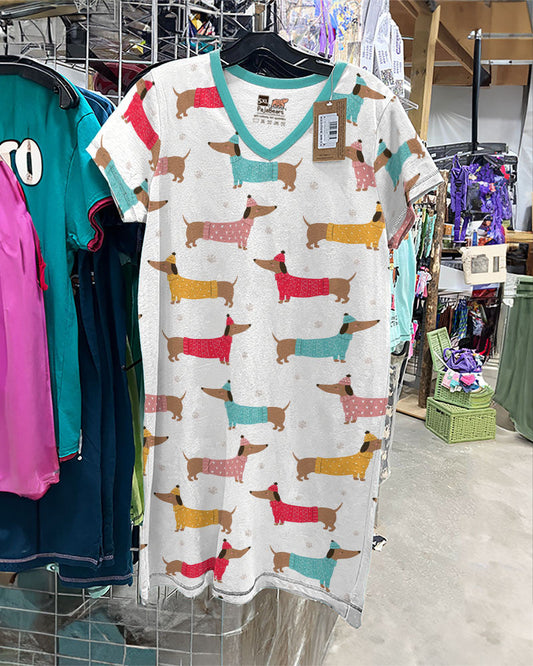 Dachshunds V-neck Nightshirts Snuggly