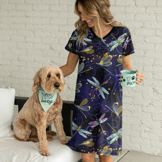 Dragonfly Shineful V-neck Nightshirts Enchanting