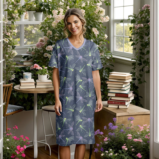 Dragonfly Shineful V-neck Nightshirts Graceful