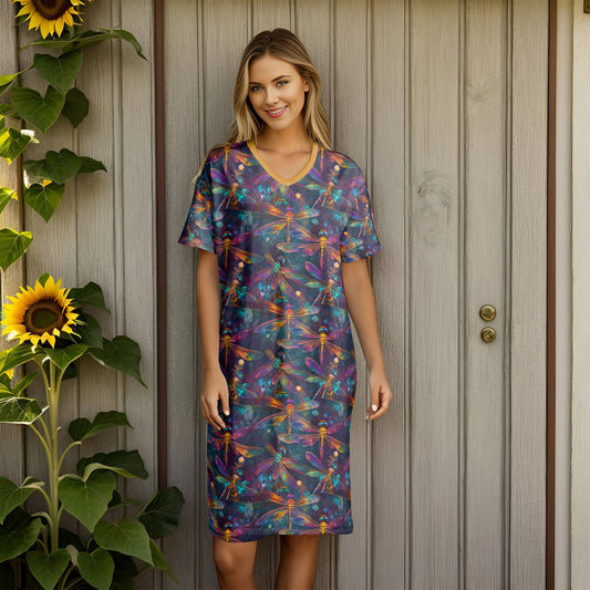 Dragonfly Shineful V-neck Nightshirts Colorful