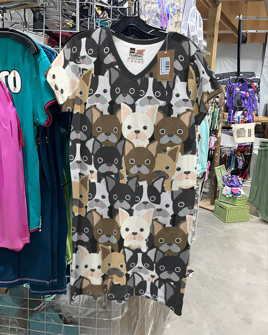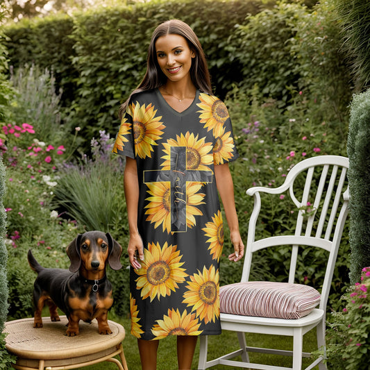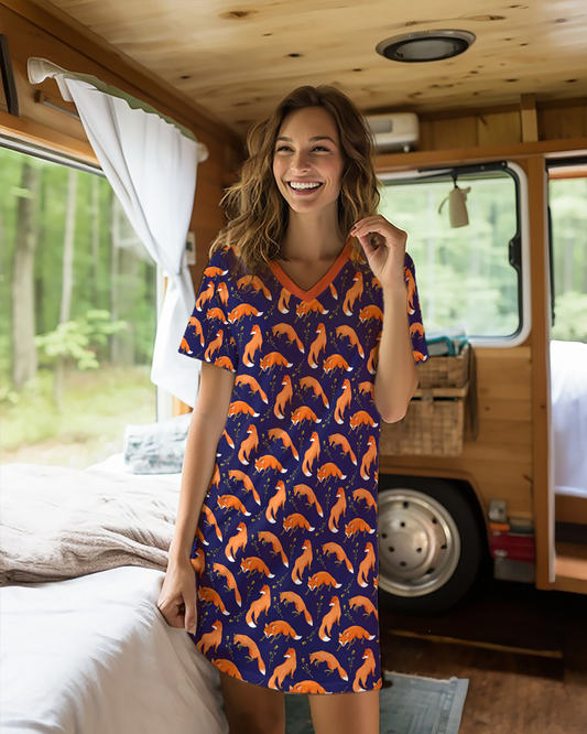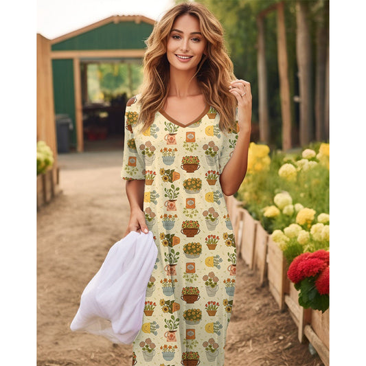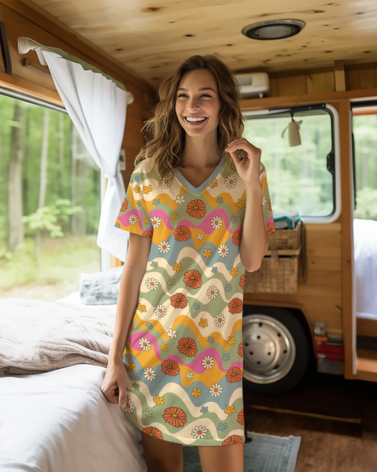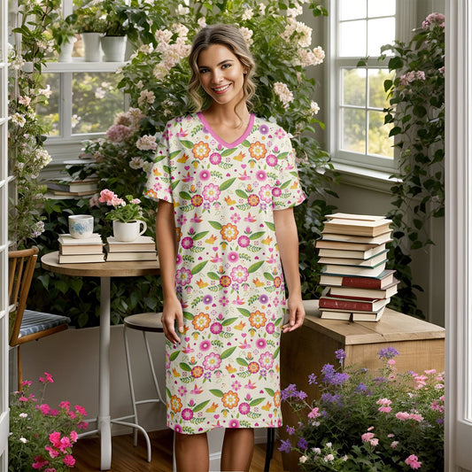 Flowers Shineful V-neck Nightshirts Vintage Hand Draw