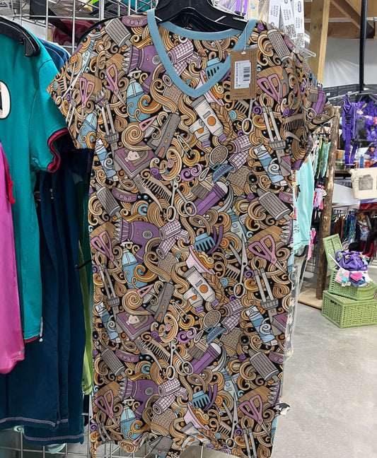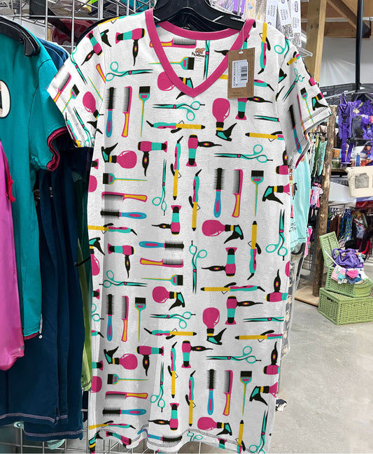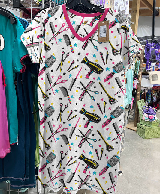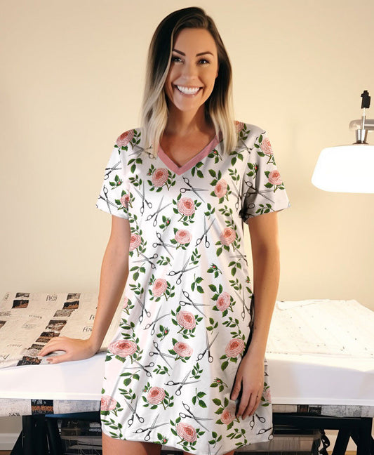 Hair Stylists V-neck Nightshirts Scissors Roses