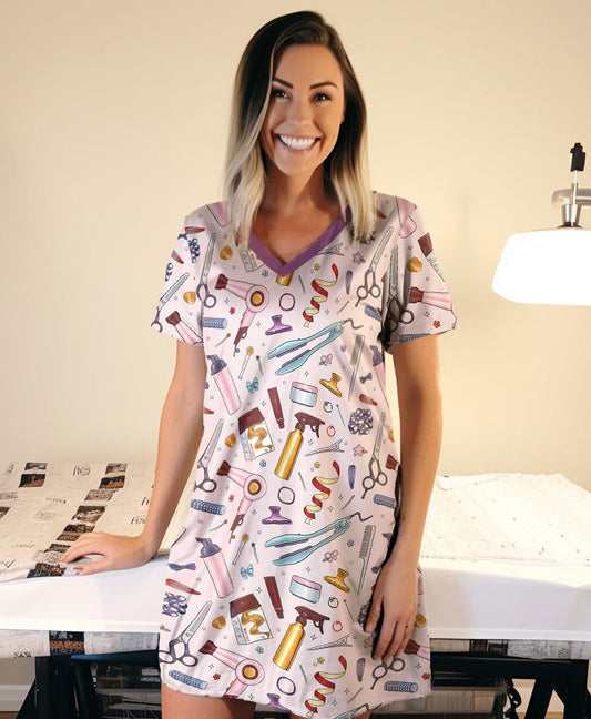 Hair Stylists V-neck Nightshirts Charming Hair Stylist