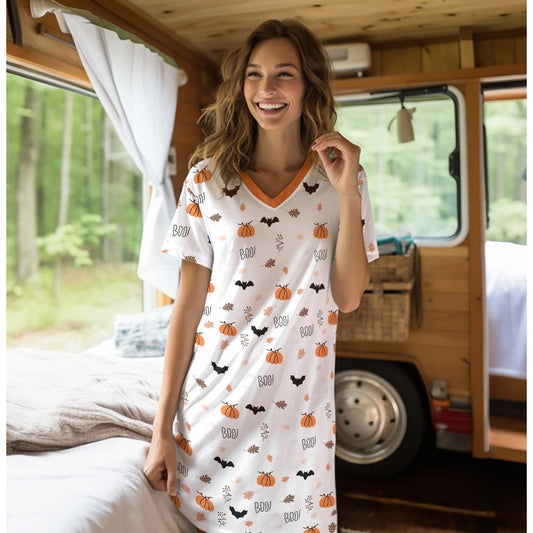 Halloween Shineful V-neck Nightshirt Spooky Boo